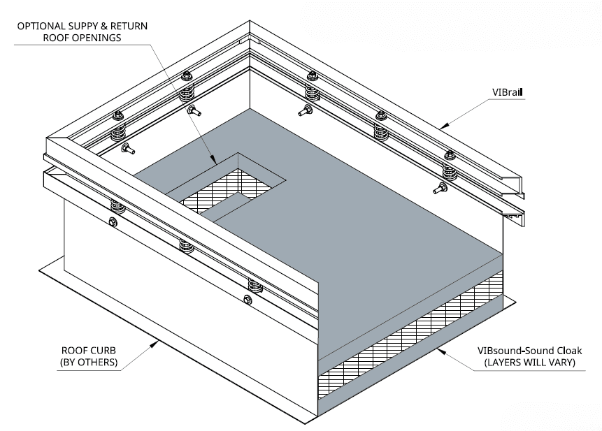 VIBsound-SC is beneficial for spaces in owner-occupied buildings where noise sensitivity is a concern. This  pplication will provide for a greater transmission loss created by air handling  quipment from entering into a  building than a traditional curb system would offer.