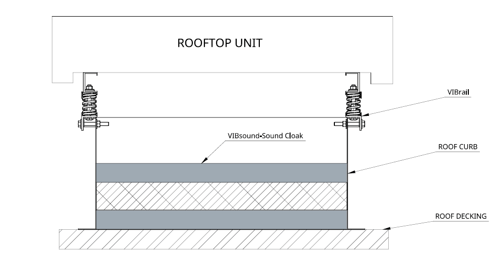 The VIBsound-Sound Cloak (SC) is VIB-ISO’s in-curb, acoustical treatment for noise transfer reduction from roof-mounted equipment curbs.